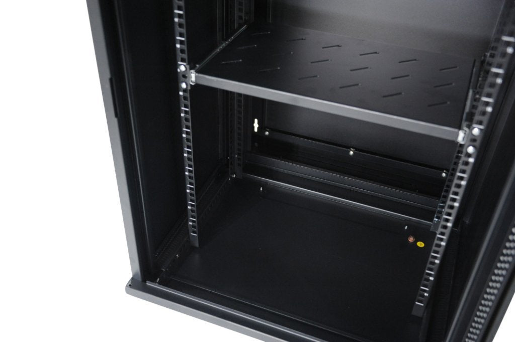 The list of cabinet features that are INCLUDED in the purchase of this effective and efficient data rack cabinet is incredible! The heavy-duty framework is built to last. The attractive black cabinet features a clear front door for easy access and monitoring. The cabinet is constructed with a 2mm steel thickness and equipped with a front-tempered reversible glass door.